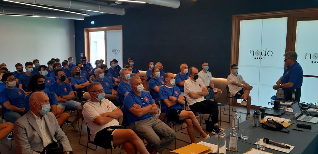 Dopo la cena, i lavori del raduno sono ripresi con la Riunione Tecnica tenuta dai colleghi che operano alla CAN D, Davide Santarossa, Michele Maccorin e Michele Piccolo, incontro durante il quale i ragazzi dell’OTS hanno assistito e partecipato attivamente all’analisi di video tecnico -didattici selezionati dal Settore Tecnico e brillantemente spiegati dai colleghi.